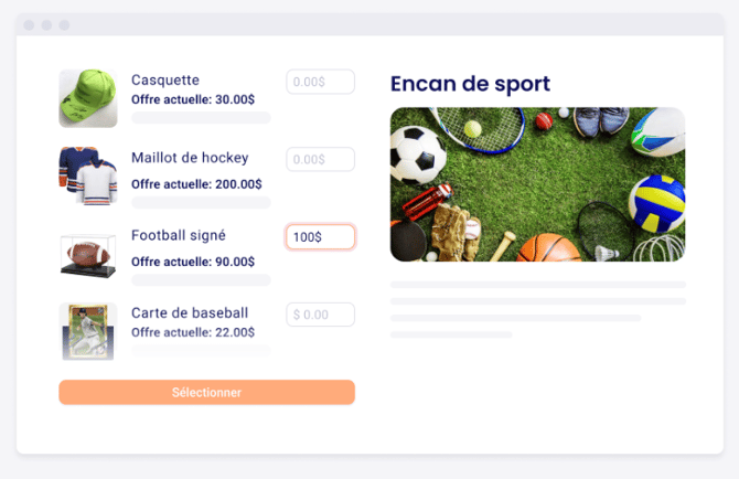 Choisissez le formulaire d’enchères Zeffy pour vos enchères en ligne, où les participants peuvent miser à distance pendant une période définie. C’est la solution idéale si vous souhaitez un suivi automatique des mises, des notifications aux gagnants et une gestion des paiements — tout est en ligne, sans inscription requise pour les enchérisseurs.
