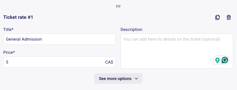 The Number of tickets available per event date is found in the "Options" of each ticket type that is created. It refers to the number of tickets available for that specific ticket type. If you set this number to 50, once 50 of those tickets have been sold, sales for that specific ticket type will be stopped.